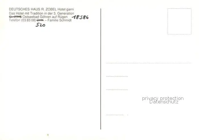 Goehren_Ruegen Deutsches Haus R. Zobel Hotel garni Goehren Ruegen postalisch nicht gelaufen nach 1965 Erhaltung siehe scans [WerneD78] WernPID7
