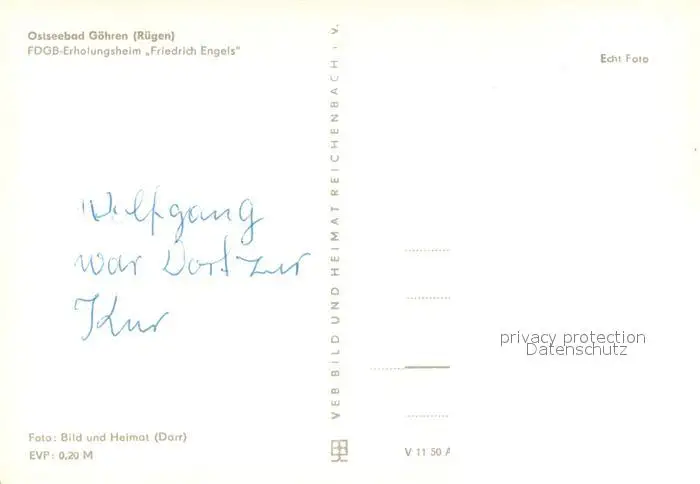 Goehren_Ruegen FDGB-Erholungsheim Friedrich Engels Aussenansicht Goehren Ruegen postalisch nicht gelaufen nach 1965 Erhaltung siehe scans [LiesaD40] LiesID40