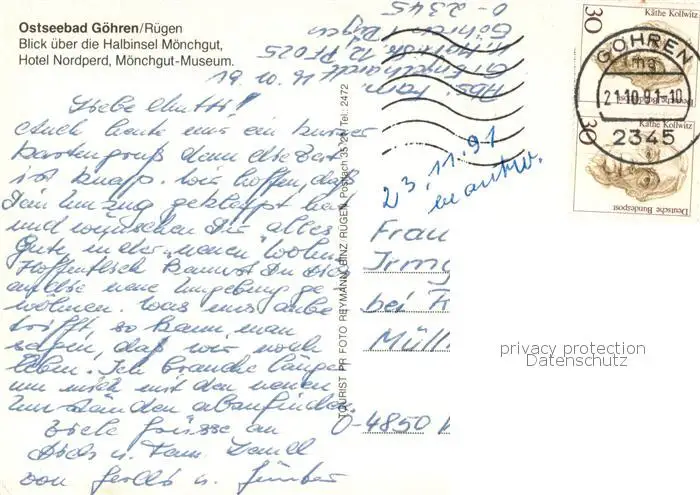 Goehren_Ruegen Fliegeraufnahme mit Halbinsel Moenchgut Hotel Nordperd Moenchgut Museum Goehren Ruegen postalisch gelaufen 1991 Erhaltung siehe scans [FriedD77] Frierer