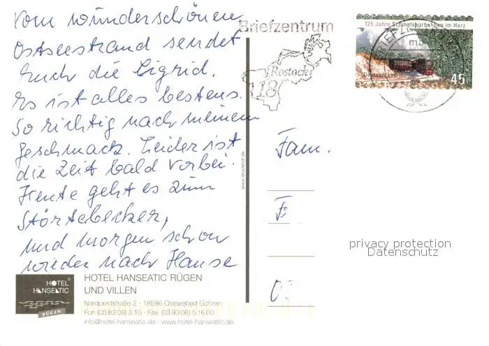 Goehren_Ruegen Hotel Hanseatic Restaurant Fremdenzimmer Hallenbad Goehren Ruegen postalisch gelaufen 2012 Erhaltung siehe scans [FriedD77] Frierer