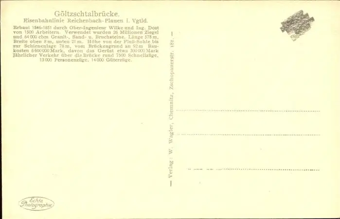 Goeltzschtalbruecke postalisch nicht gelaufen 1921-1965 gute Erhaltung Alte Ansichtskarte Postkarte hz Cassa
