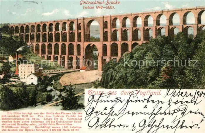 Goeltzschtalbruecke Viadukt Bahnstrecke Goeltzschtalbruecke postalisch gelaufen 1904 Erhaltung siehe scans [KathaD81] Kathoren