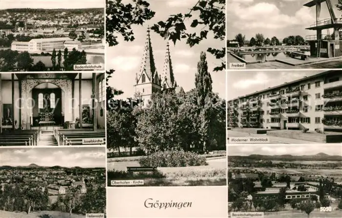 Goeppingen Bodenfeldschule Josefskirche Freibad Panorama Goeppingen postalisch nicht gelaufen 1921-1965 Erhaltung siehe scans [KathaD81] Kathoren