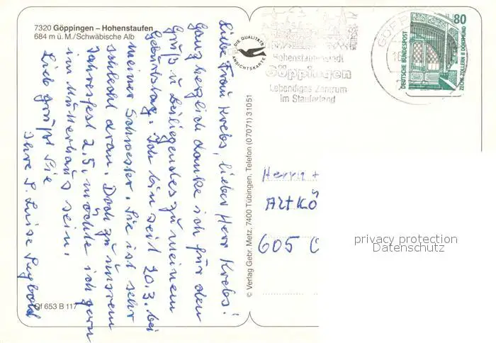 Goeppingen Landschaftspanorama mit Hohenstaufen Schwaebische Alb Goeppingen postalisch gelaufen 1993 Erhaltung siehe scans [FriedD77] Frierer