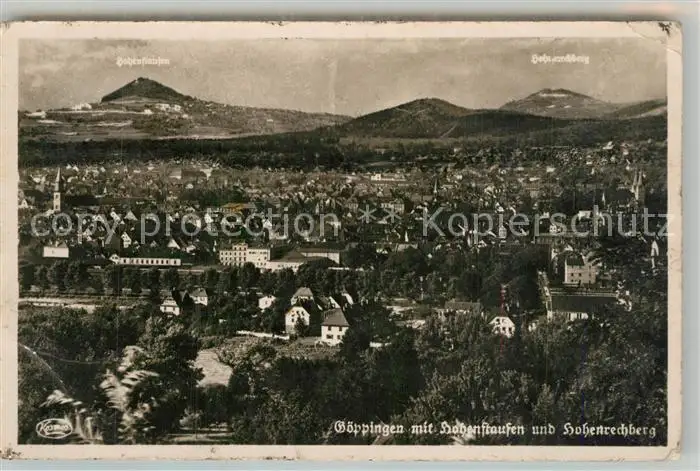 Goeppingen Stadtpanorama mit Blick zum Hohenstaufen und Hohenrechberg Goeppingen postalisch gelaufen 1941 Erhaltung siehe scans [FriedD77] Frierer