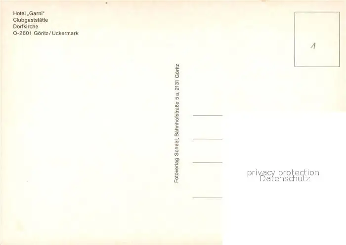 Goeritz_Uckermark Hotel Garni Clubgaststaette Dorfkirche Goeritz Uckermark postalisch nicht gelaufen nach 1965 Erhaltung siehe scans [FriedD77] Frierer