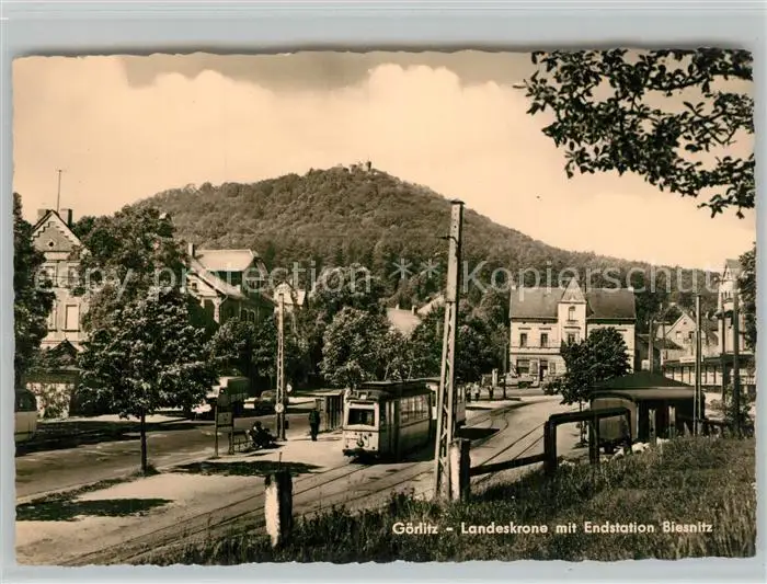 AK / Ansichtskarte Goerlitz_Sachsen Landeskrone mit Endstation Biesnitz Goerlitz Sachsen