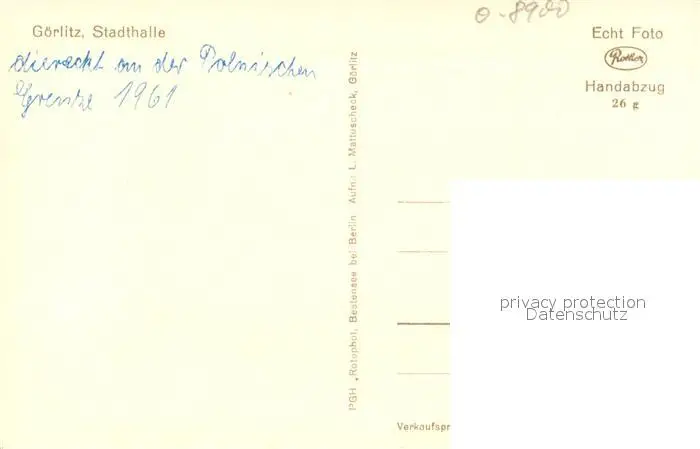 Goerlitz_Sachsen Stadthalle Handabzug Goerlitz Sachsen postalisch nicht gelaufen 1961 Erhaltung siehe scans [FriedD77] Frierer