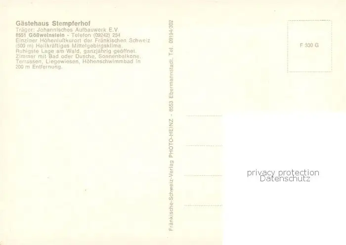 Goessweinstein Gaestehaus Stempferhof Goessweinstein postalisch nicht gelaufen nach 1965 Erhaltung siehe scans [FriedD77] Frierer