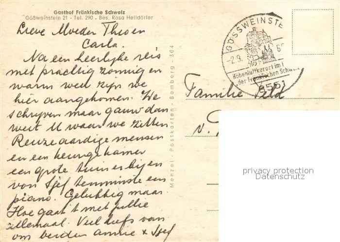 Goessweinstein Gasthof Fraenkische Schweiz Goessweinstein postalisch gelaufen 1968 Erhaltung siehe scans [WerneD78] WernPID7