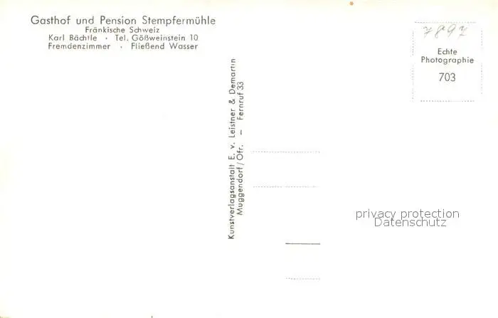 Goessweinstein Gasthof Pension Stempfermuehle Ortsblick Sachsenmuehle Tuechersfeld Behringermuehle Pottenstein Goessweinstein postalisch nicht gelaufen 1921-1965 Erhaltung siehe scans [WerneD78] WernPID7