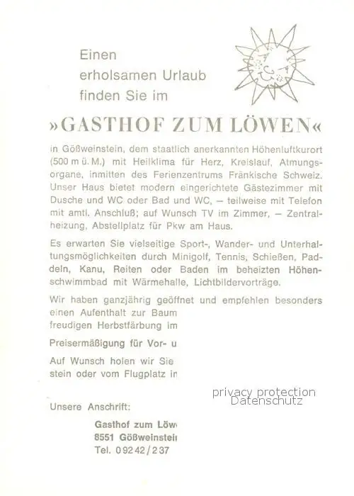 Goessweinstein Gasthof zum Loewen Goessweinstein postalisch nicht gelaufen nach 1965 Werbekarte (keine Postkarte) Erhaltung siehe scans [FriedD77] Werbekarte (keine Postkarte) Frierer