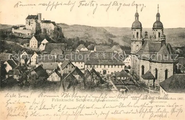Goessweinstein Kirche Burg Goessweinstein postalisch gelaufen 1903 Erhaltung siehe scans [KathaD81] Kathoren
