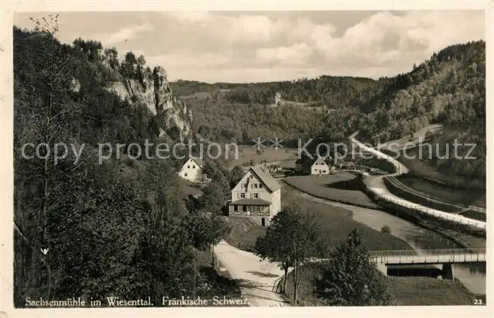 Goessweinstein Panorama mit Sachsenmuehle Fraenkische Schweiz Goessweinstein postalisch gelaufen 1935 Erhaltung siehe scans [FriedD77] Frierer