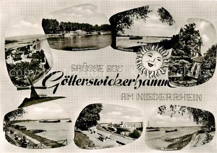 AK / Ansichtskarte Goetterswickerhamm_Niederrhein Partie am Rheim Dorfkirche Anlegestelle Dampfer Windmuehle Goetterswickerhamm