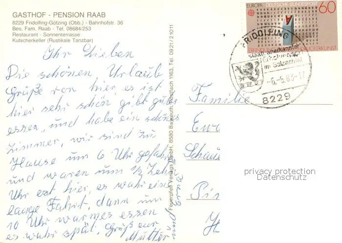 Goetzing Gasthof Pension Raab Goetzing postalisch gelaufen 1983 Erhaltung siehe scans [FriedD77] Frierer