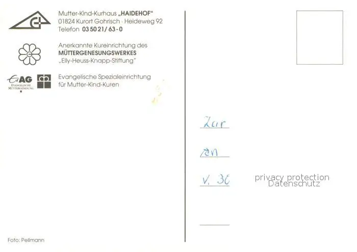 Gohrisch Mutter Kind Kurhaus Haidehof Gohrisch postalisch nicht gelaufen 2003 Erhaltung siehe scans [FriedD77] Frierer