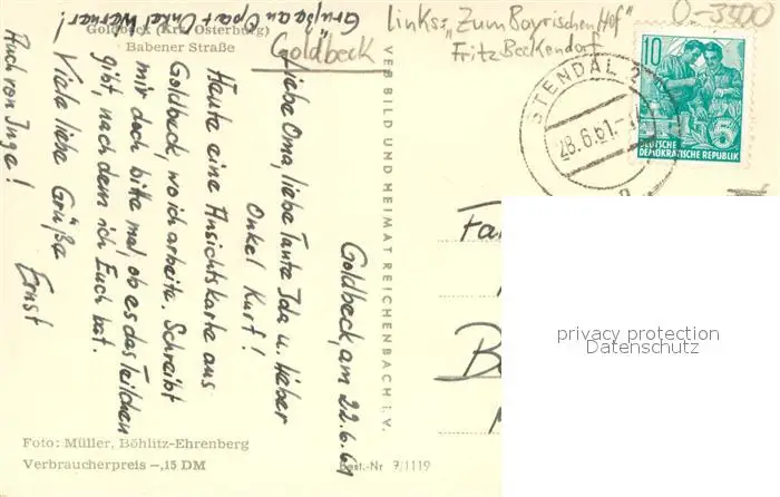 Goldbeck_Altmark Babener Strasse mit Gaststaette Zum Bayrischen Hof Goldbeck Altmark postalisch gelaufen 1961 Erhaltung siehe scans [WerneD78] WernPID7