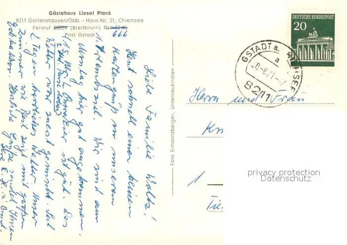 Gollenshausen_Chiemsee Gaestehaus Haus am See Terrasse Seeblick Gollenshausen_Chiemsee postalisch gelaufen 1971 Erhaltung siehe scans [FriedD77] Frierer