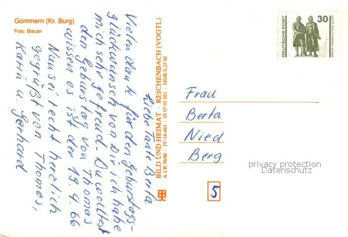 Gommern Fachkrankenhaus Vogelsang Details Gommern postalisch nicht gelaufen nach 1965 Erhaltung siehe scans [FriedD77] Frierer