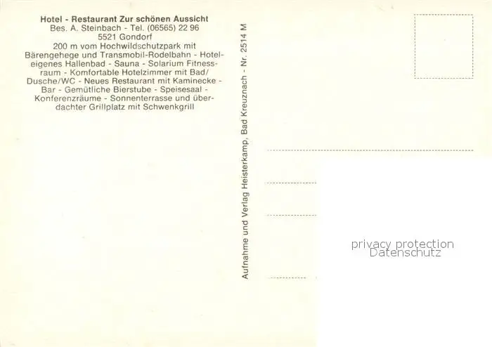 Gondorf_Bitburg Hotel Restaurant Zur schoenen Aussicht Gondorf Bitburg postalisch nicht gelaufen nach 1965 Erhaltung siehe scans [FriedD77] Frierer