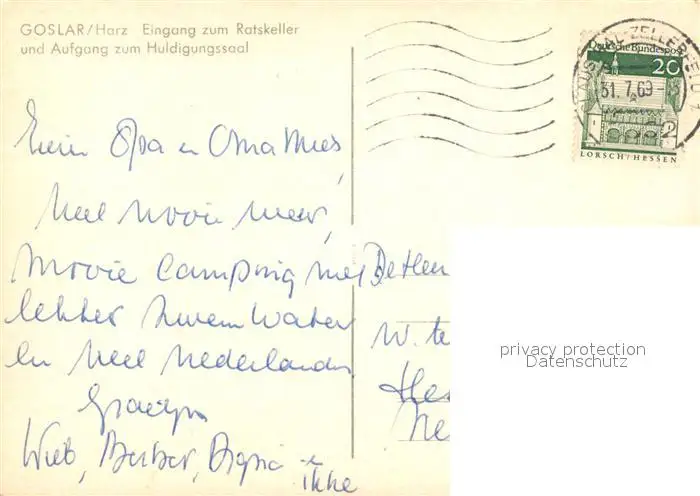Goslar Eingang Ratskeller Aufgang Huldigungssaal Goslar postalisch gelaufen 1969 Erhaltung siehe scans [KathaD81] Kathoren