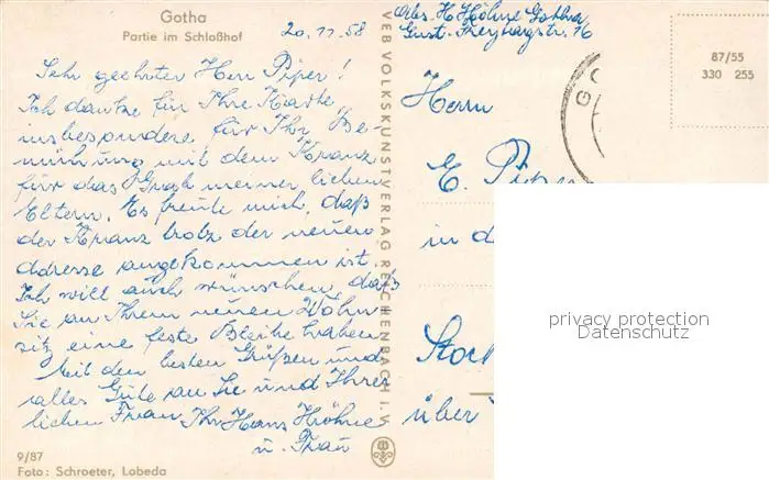 Gotha_Thueringen Partie im Schlosshof Gotha Thueringen postalisch gelaufen 1958 Erhaltung siehe scans [FriedD77] Frierer