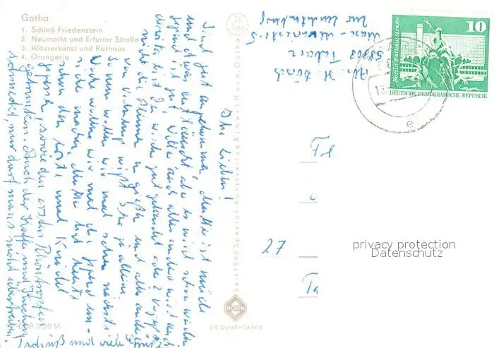 Gotha_Thueringen Schloss Friedenstein Neumarkt Erfurter Strasse Wasserkunst Rathaus Orangerie Chronik Gotha Thueringen postalisch gelaufen 1978 Erhaltung siehe scans [FriedD77] Frierer