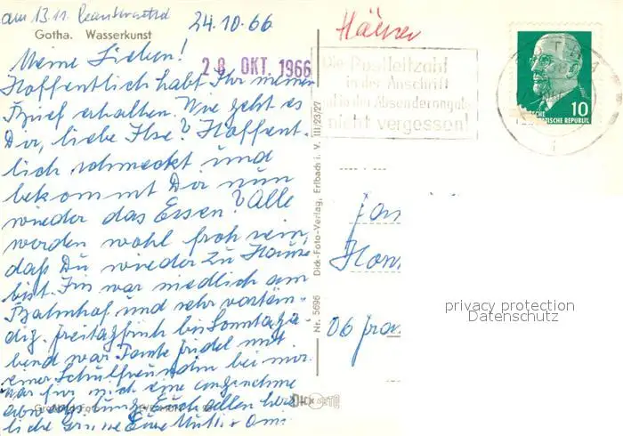 Gotha_Thueringen Wasserkunst Gotha Thueringen postalisch gelaufen 1966 Erhaltung siehe scans [KathaD81] Kathoren