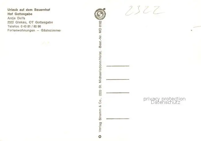 Gottesgabe_Giekau Hof Gottesgabe Urlaub auf dem Bauernhof Ferienwohnungen Gottesgabe Giekau postalisch nicht gelaufen nach 1965 Erhaltung siehe scans [FriedD77] Frierer