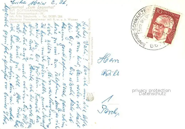 Gottsmannsgruen_Oberfranken Gasthof Zum Zegasttal Gottsmannsgruen postalisch gelaufen 1972 Erhaltung siehe scans [WerneD78] WernPID7