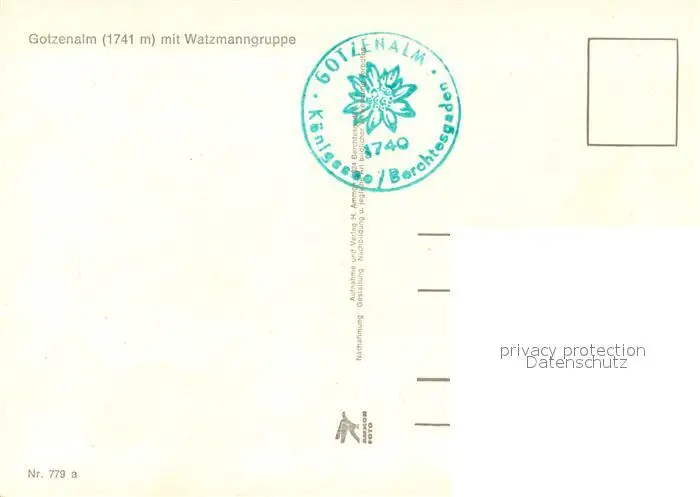 Gotzenalm_1740m_Berchtesgaden mit Watzmanngruppe postalisch gelaufen nach 1965 Erhaltung siehe scans [WerneD78] WernPID7