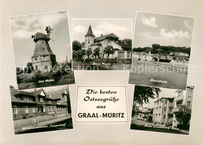 AK / Ansichtskarte Graal Mueritz_Ostseebad Alte Muehle Kindersanatorium Tannenhof Haus Malta Strandhalle Rosa Luxemburg Heim Graal Mueritz_Ostseebad