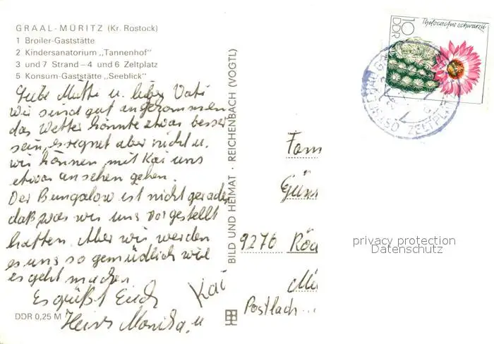 Graal-Mueritz_Ostseebad Broiler Gaststaette Sanatorium Strand Zeltplatz Konsum Gaststaette Seeblick Graal-Mueritz_Ostseebad postalisch gelaufen 1983 Erhaltung siehe scans [FriedD77] Frierer