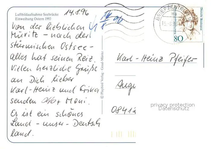 Graal-Mueritz_Ostseebad Fliegeraufnahme mit Seebruecke Graal-Mueritz_Ostseebad postalisch gelaufen 1996 Erhaltung siehe scans [WerneD78] WernPID7