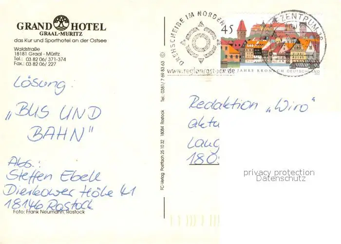 Graal-Mueritz_Ostseebad Grand Hotel Graal-Mueritz_Ostseebad postalisch gelaufen nach 1965 Erhaltung siehe scans [WerneD78] WernPID7