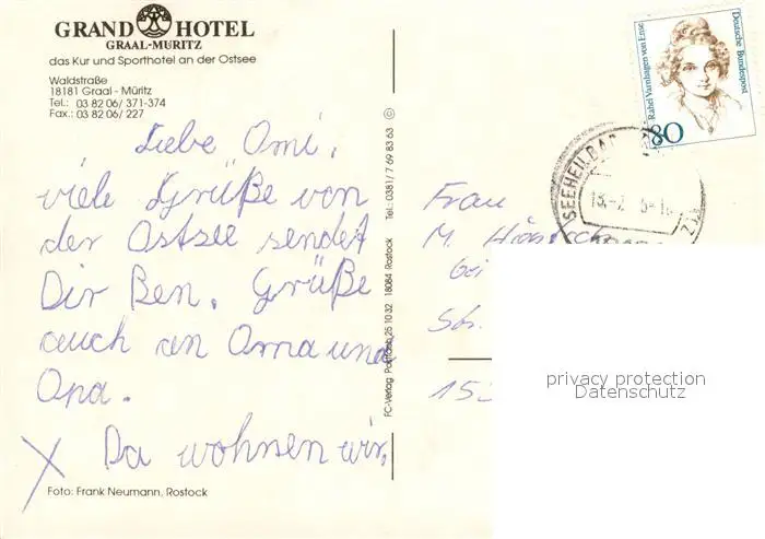 Graal-Mueritz_Ostseebad Grand Hotel Kur- und Sporthotel an der Ostsee Graal-Mueritz_Ostseebad postalisch gelaufen ca. 1985 Erhaltung siehe scans [FriedD77] Frierer