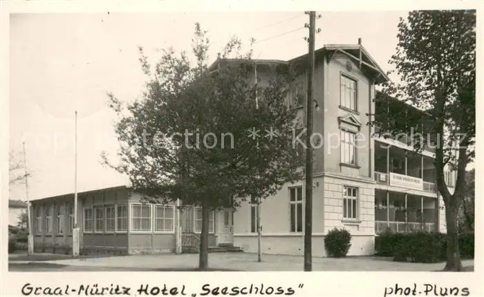 Graal Mueritz_Ostseebad Kategorie Alte Ansichtskarten Postkarten bx88510 Graal Mueritz_Ostseebad Hotel Seeschloss Graal Mueritz_Ostseebad postalisch gelaufen 1955 Erhaltung siehe scans [FriedD77]