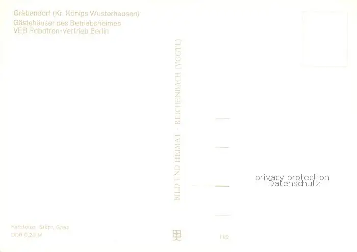Graebendorf_Koenigs_Wusterhausen Gaestehaeuser des Betriebsheimes VEB Robotron Vertrieb Berlin Graebendorf_Koenigs postalisch nicht gelaufen 1985 Erhaltung siehe scans [FriedD77] Frierer
