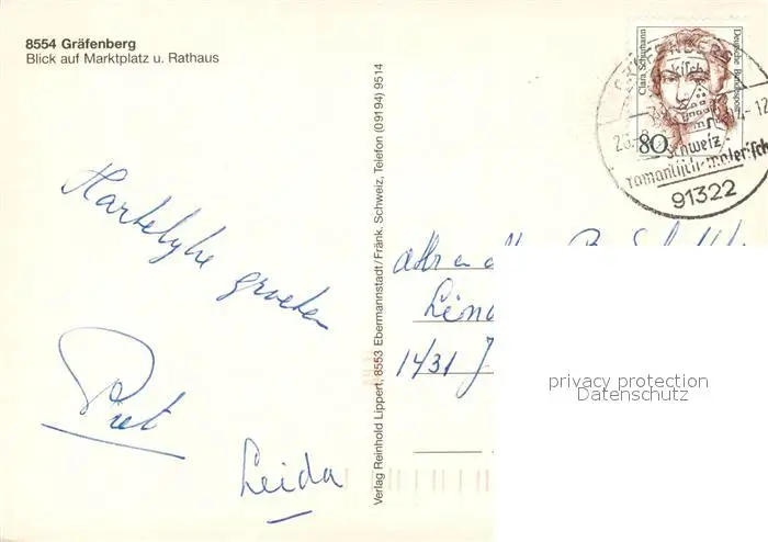 Graefenberg Oberfranken Kategorie Alte Ansichtskarten Postkarten bx54847 Graefenberg_Oberfranken Marktplatz Rathaus Graefenberg Oberfranken postalisch gelaufen nach 1965 Erhaltung siehe scans [NatalD47]
