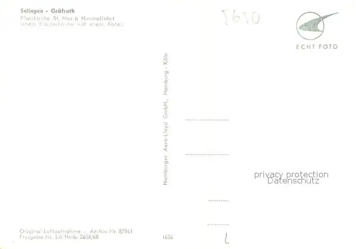 Graefrath Fliegeraufnahme Pfarrkirche St. Mariae Himmelfahrt Graefrath postalisch nicht gelaufen 1921-1965 Erhaltung siehe scans [LiesaD40] LiesID40
