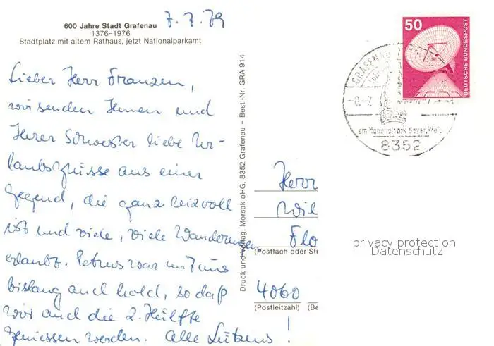 Grafenau Niederbayern Kategorie Alte Ansichtskarten Postkarten bx54844 Grafenau_Niederbayern Stadtplatz Rathaus Grafenau Niederbayern postalisch gelaufen 1979 Erhaltung siehe scans [NatalD47]