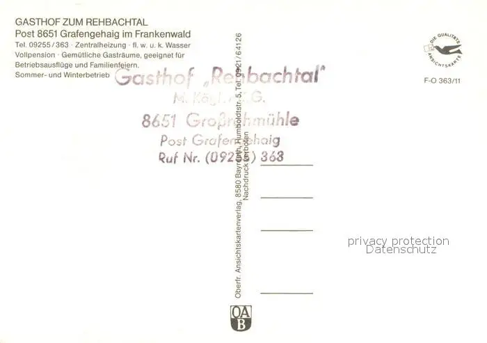 Grafengehaig Gasthaus zum Rehbachtal Grafengehaig postalisch nicht gelaufen nach 1965 Erhaltung siehe scans [LiesaD40] LiesID40