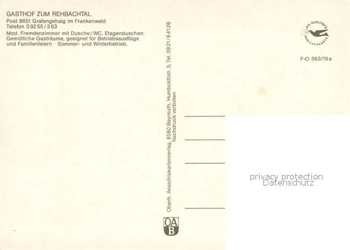 Grafengehaig Gasthof Zum Rehbachtal Gastraeume Gaestezimmer Grafengehaig postalisch nicht gelaufen nach 1965 Erhaltung siehe scans [WerneD78] WernPID7