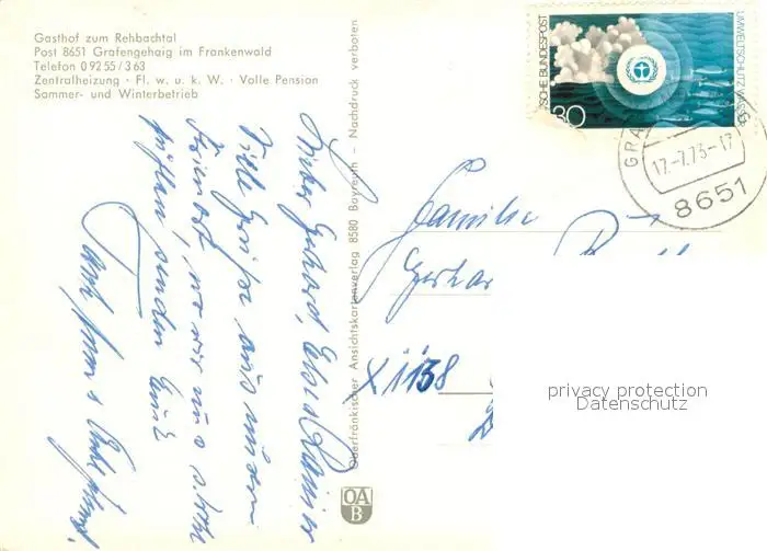 Grafengehaig Gasthof zum Rehbachtal Terrasse Waldidyll mit Reh Grafengehaig postalisch gelaufen 1973 Erhaltung siehe scans [WerneD78] WernPID7
