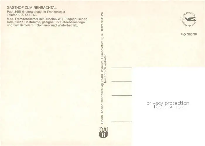 Grafengehaig Gasthof zum Rehbachtal im Frankenwald Grafengehaig postalisch nicht gelaufen nach 1965 Erhaltung siehe scans [FriedD77] Frierer