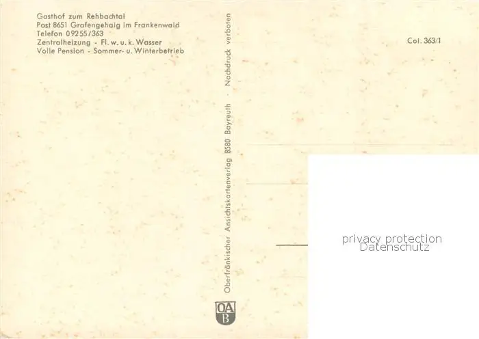 Grafengehaig Gasthof zum Rehbachtal im Frankenwald Grafengehaig postalisch nicht gelaufen nach 1965 Erhaltung siehe scans [FriedD77] Frierer