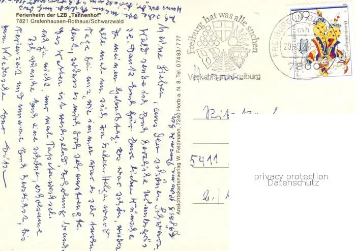 Grafenhausen_Schwarzwald Ferienheim der LZB Tannenhof Grafenhausen Schwarzwald postalisch gelaufen 1988 Erhaltung siehe scans [WerneD78] WernPID7