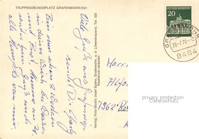 Grafenwoehr_Truppenuebungsplatz Eingang Grafenwoehr postalisch gelaufen 1970 Erhaltung siehe scans [WerneD78] WernPID7