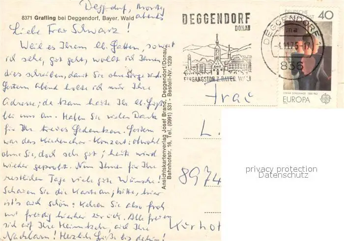 Grafling_Niederbayern Panorama Grafling Niederbayern postalisch gelaufen 1975 Erhaltung siehe scans [WerneD78] WernPID7